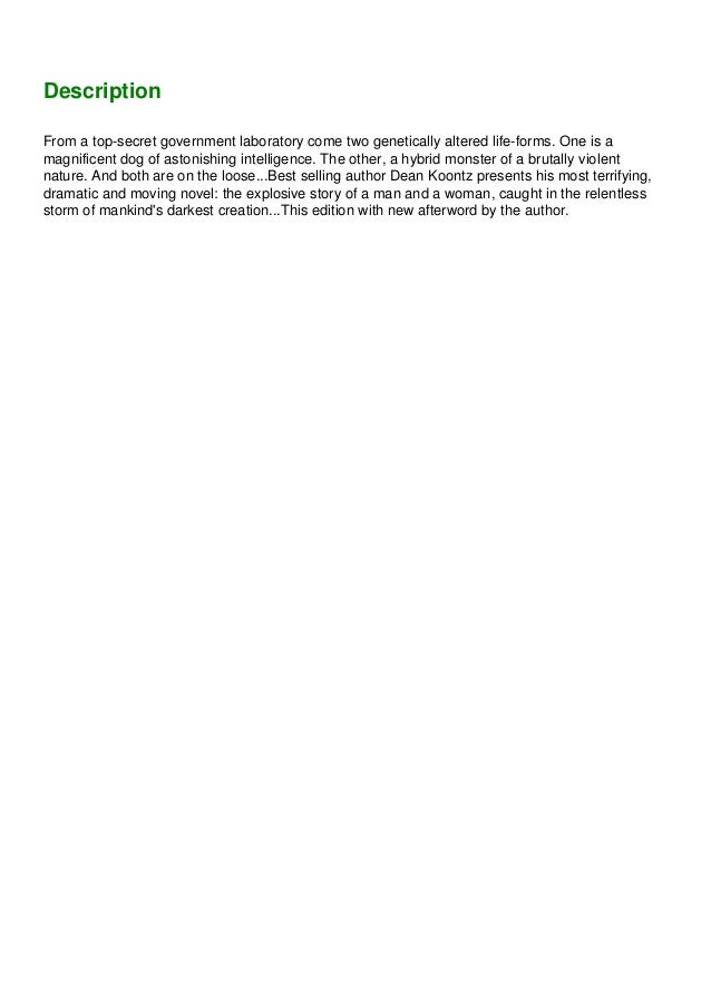Dangerous government experiments run amok. 413 pages · 2016 · 910 kb · 34 downloads· english. Contact dean koontz on messenger.